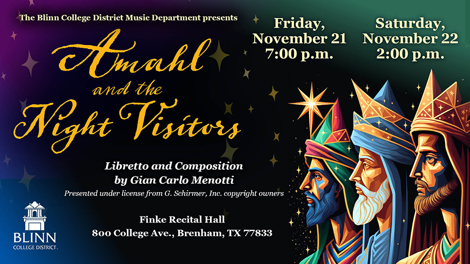The Blinn College District Music Department will present the beloved Christmas opera “Amahl and the Night Visitors” during four November presentations.